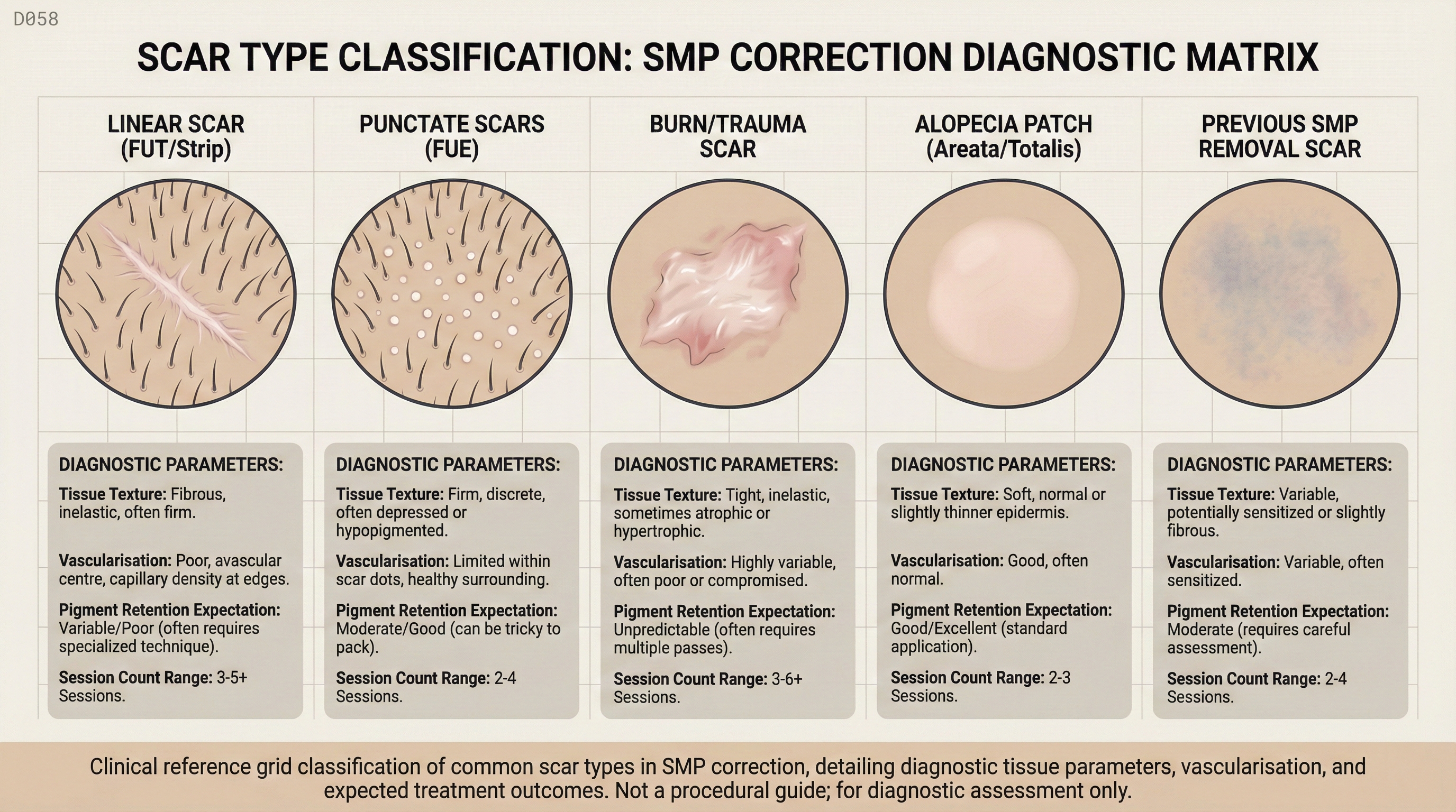 - Skin tone (Fitzpatrick type): the contrast between pigment and surrounding skin determines how much each impression contributes to perceived density. On Fitzpatrick I–II, each impression is high-contrast. On Fitzpatrick V–VI, each impression is low-contrast.