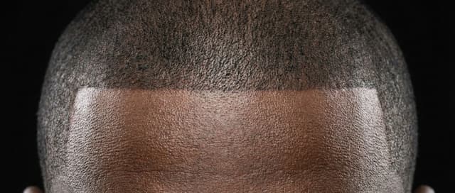 Designed to integrate with active barbershop fade. SMP-to-hair boundary invisible at conversation distance. Requires barber collaboration.